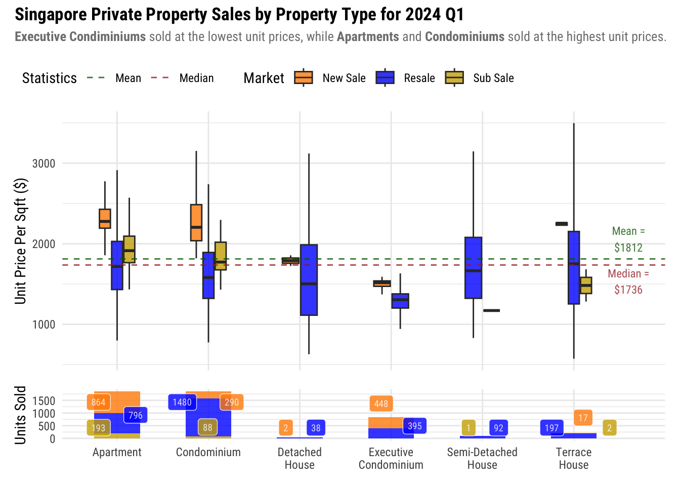 subtitle = "**Executive Condiminiums** sold at the lowest unit prices, while **Apartments** and **Condominiums** sold at the highest unit prices.") &