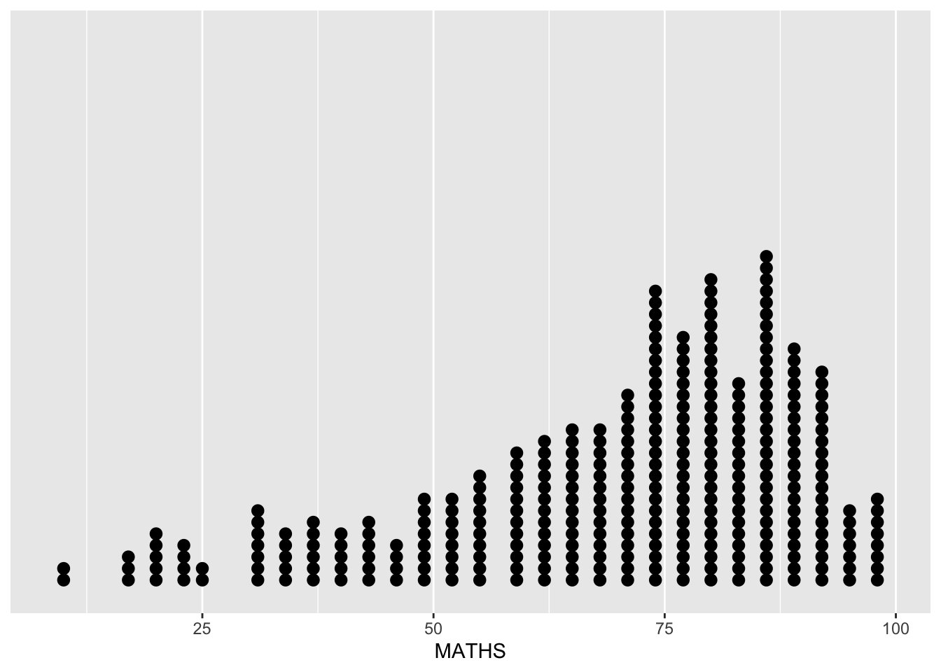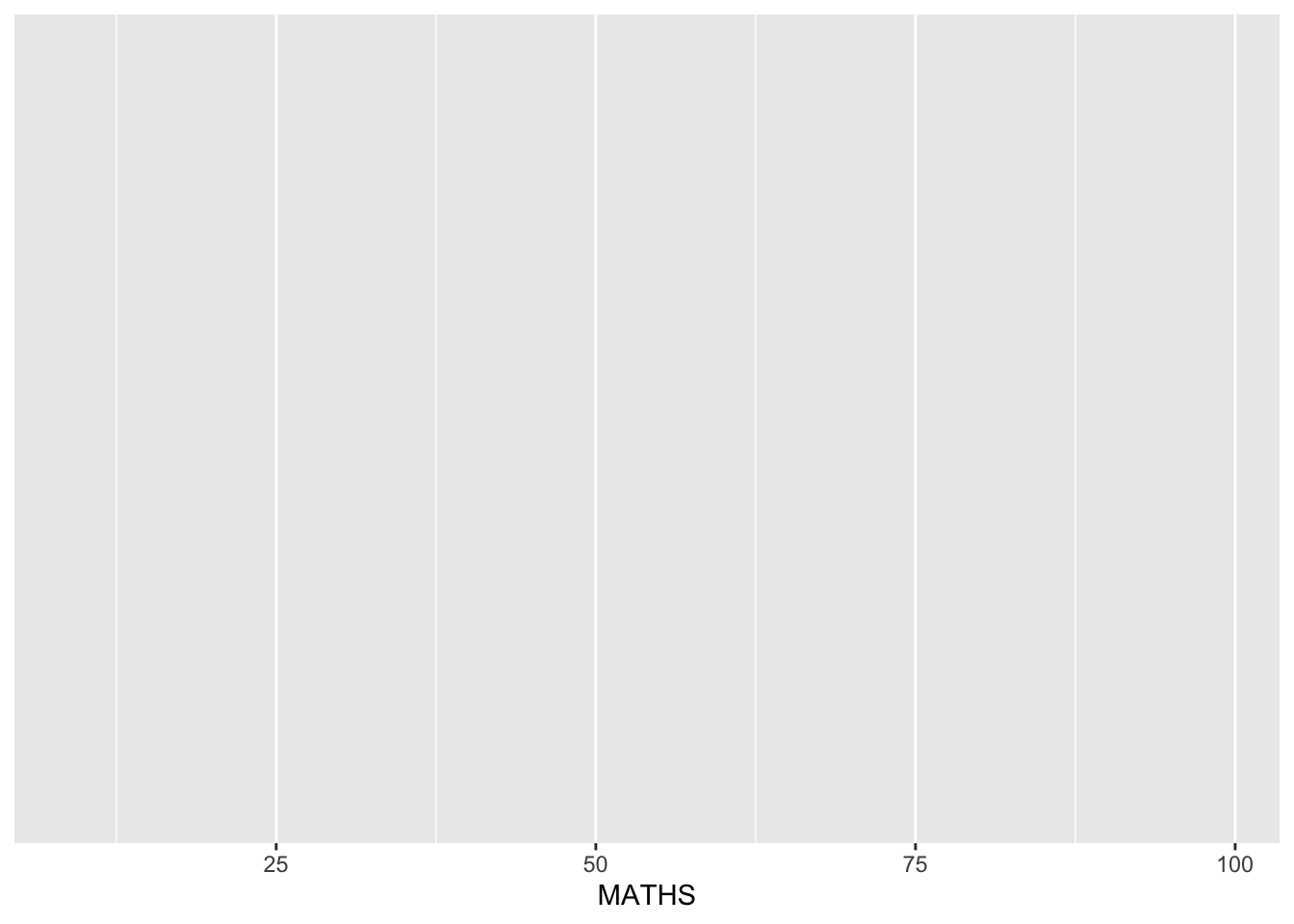 This maps the MATHS column of exam_data to the x-axis of the plot. The axis range is based on the range of this dataset.