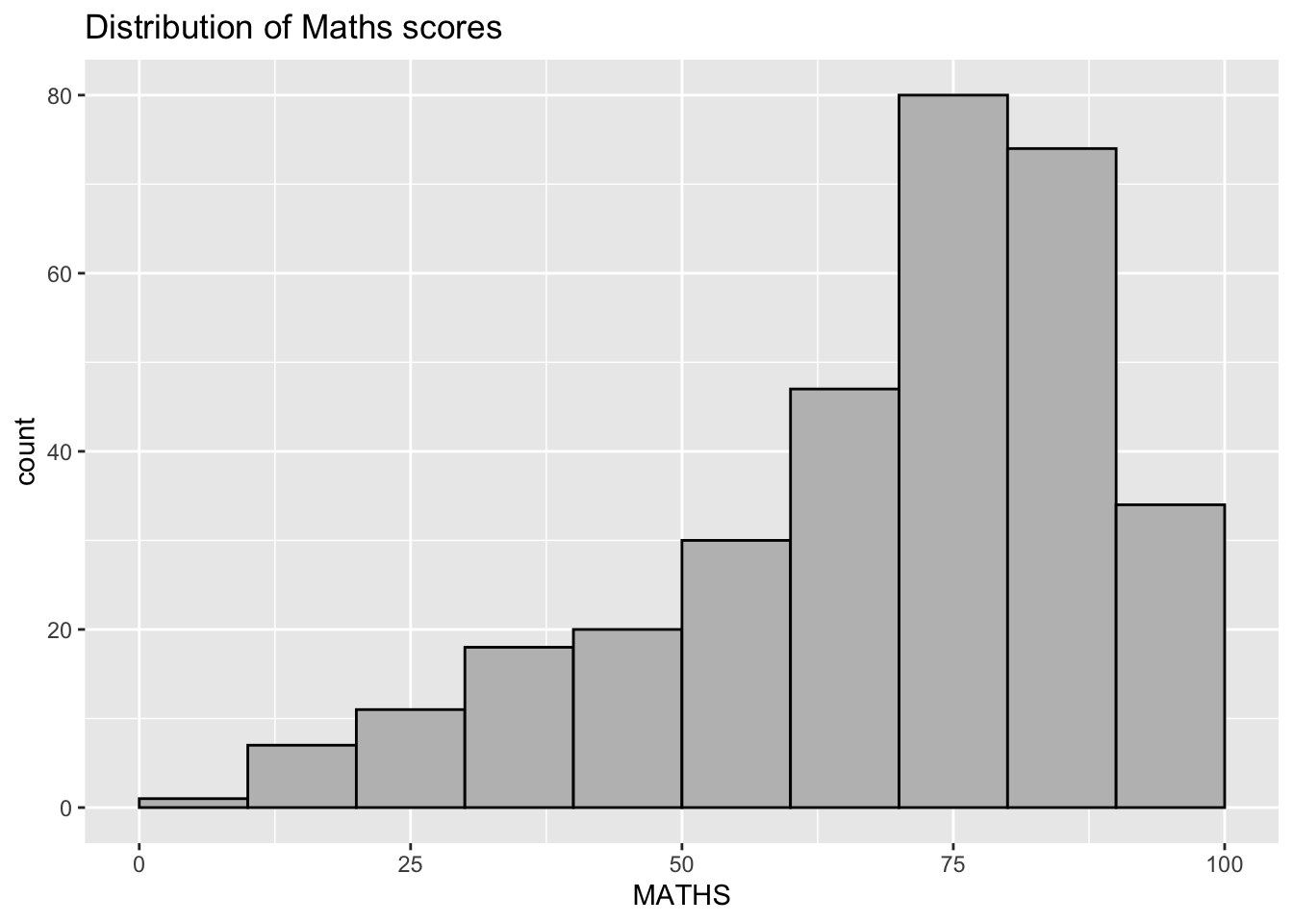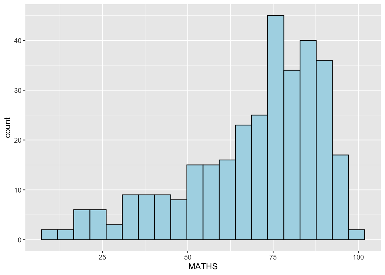 ggplot(data=exam_data, aes(x = MATHS)) +
