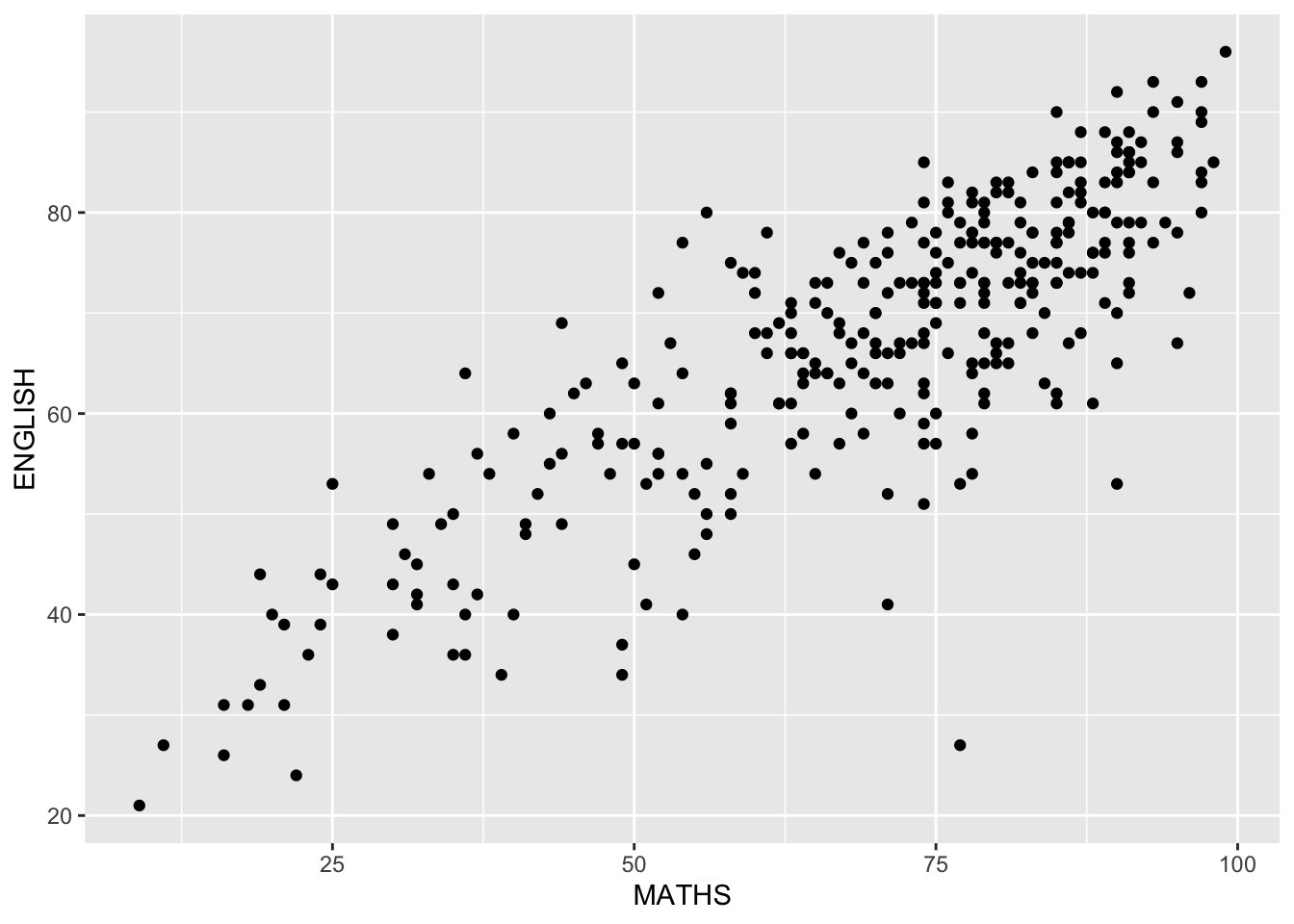 aes(x= MATHS, y=ENGLISH)) +