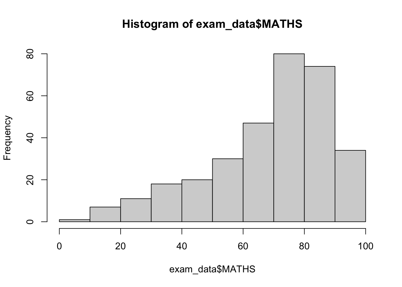 hist(exam_data$MATHS)