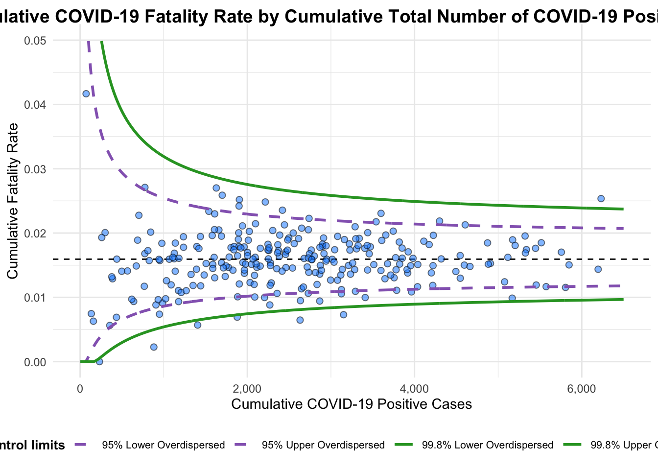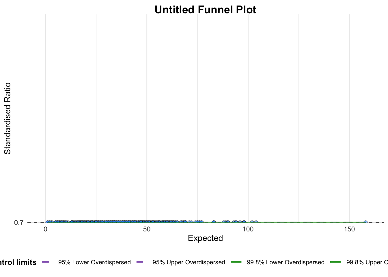 limit: plot limits (95 or 99).label_outliers: to label outliers (true or false).Poisson_limits: to add Poisson limits to the plot.OD_adjust: to add overdispersed limits to the plot.xrangeandyrange: to specify the range to display for axes, acts like a zoom function.Other aesthetic components such as graph title, axis labels etc.