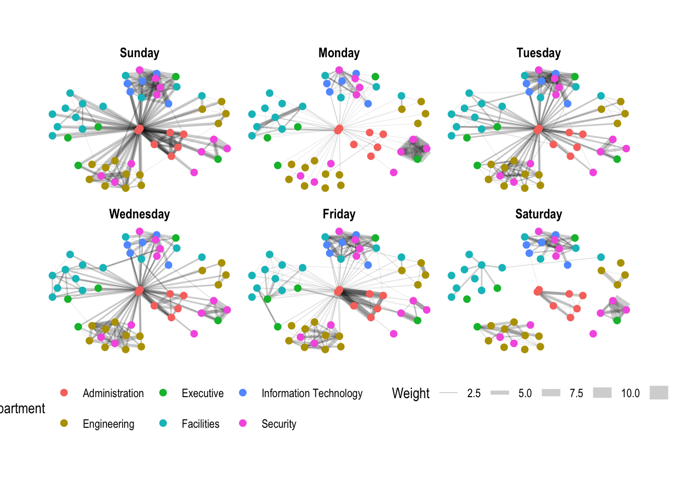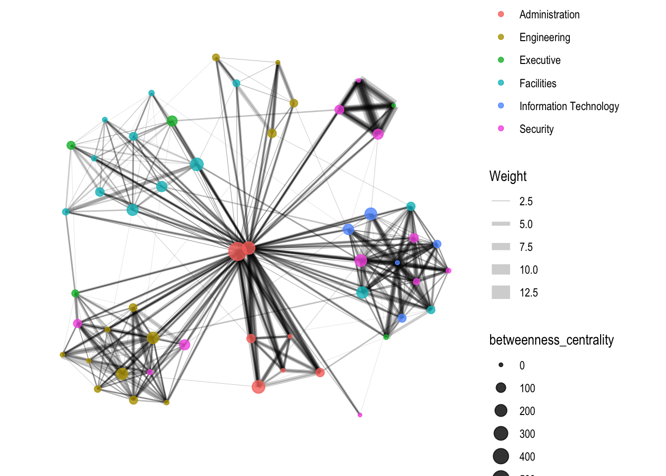 We will color the nodes depending on the department.