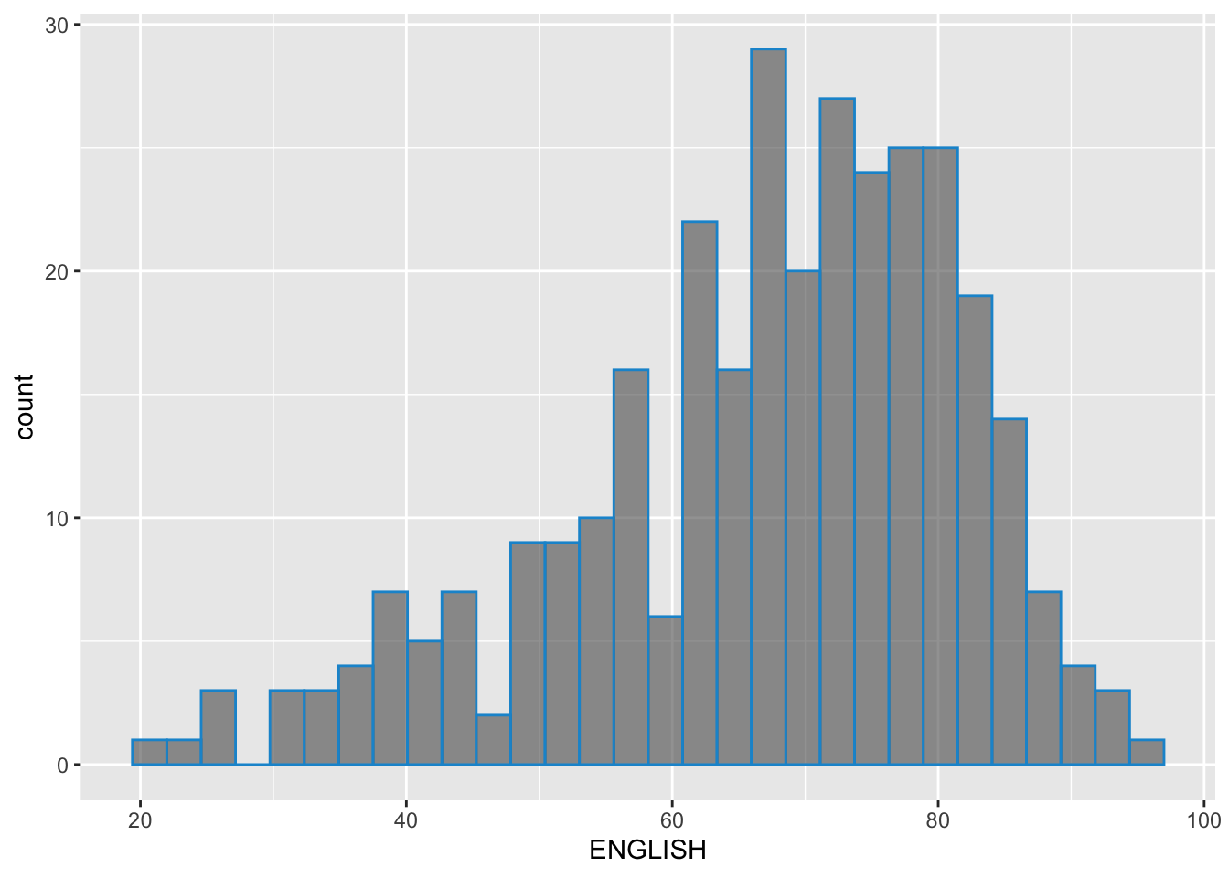 ggplot(exam_df, aes(x=ENGLISH)) +